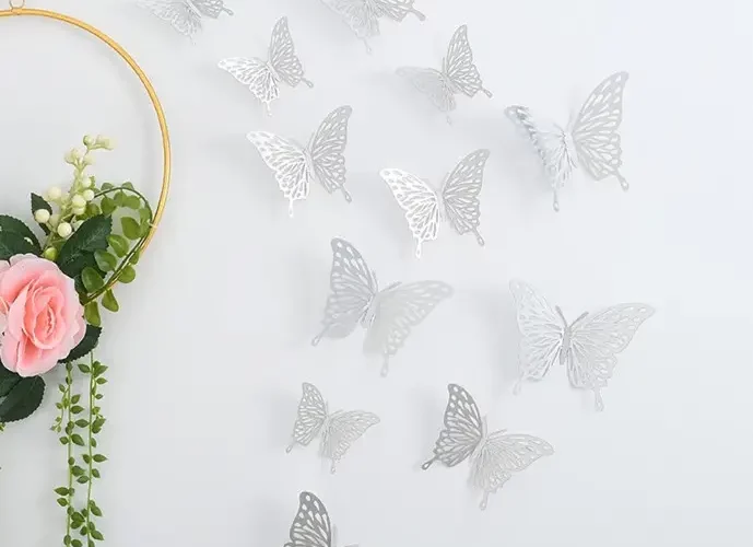 • Бабочки создают сказочную атмосферу в спальных комнатах, гостиной. Они привносят в жизнь легкость, утонченность. Декораторы активно используют красивое украшения для оформления праздничных столов, детских комнат, фотозон, свадебных церемоний, букетов.